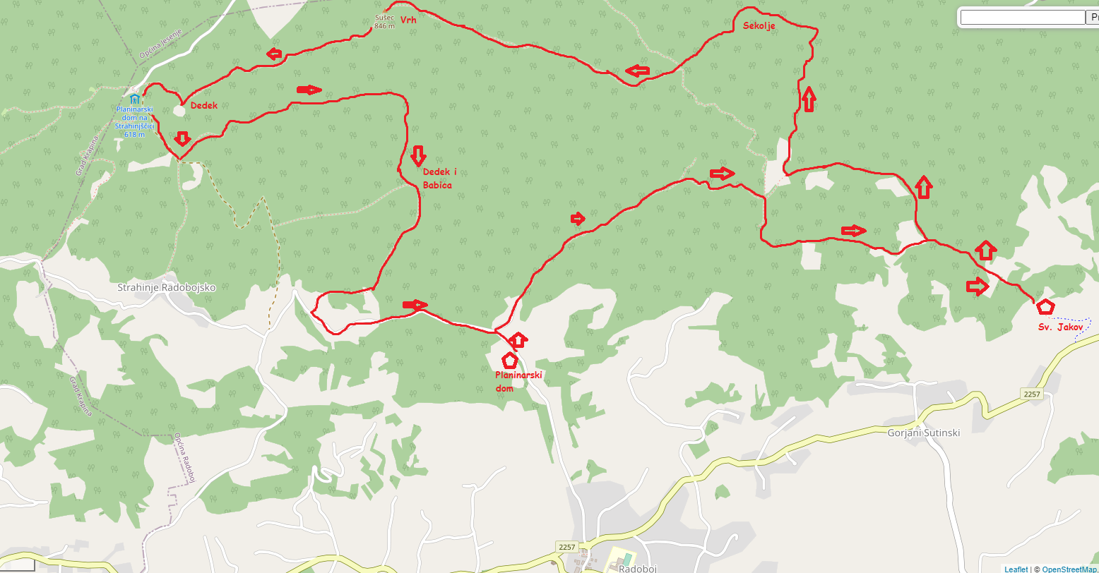 -Lovački dom Šemnica- Poljane- Sekolje- Prijevoj- Sušec- Dedek- pl. kuća Strahinjčica- Dedek i babica