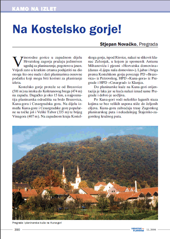 članak Stjepana Novačko, Hrvatski planinar broj 11/2006.