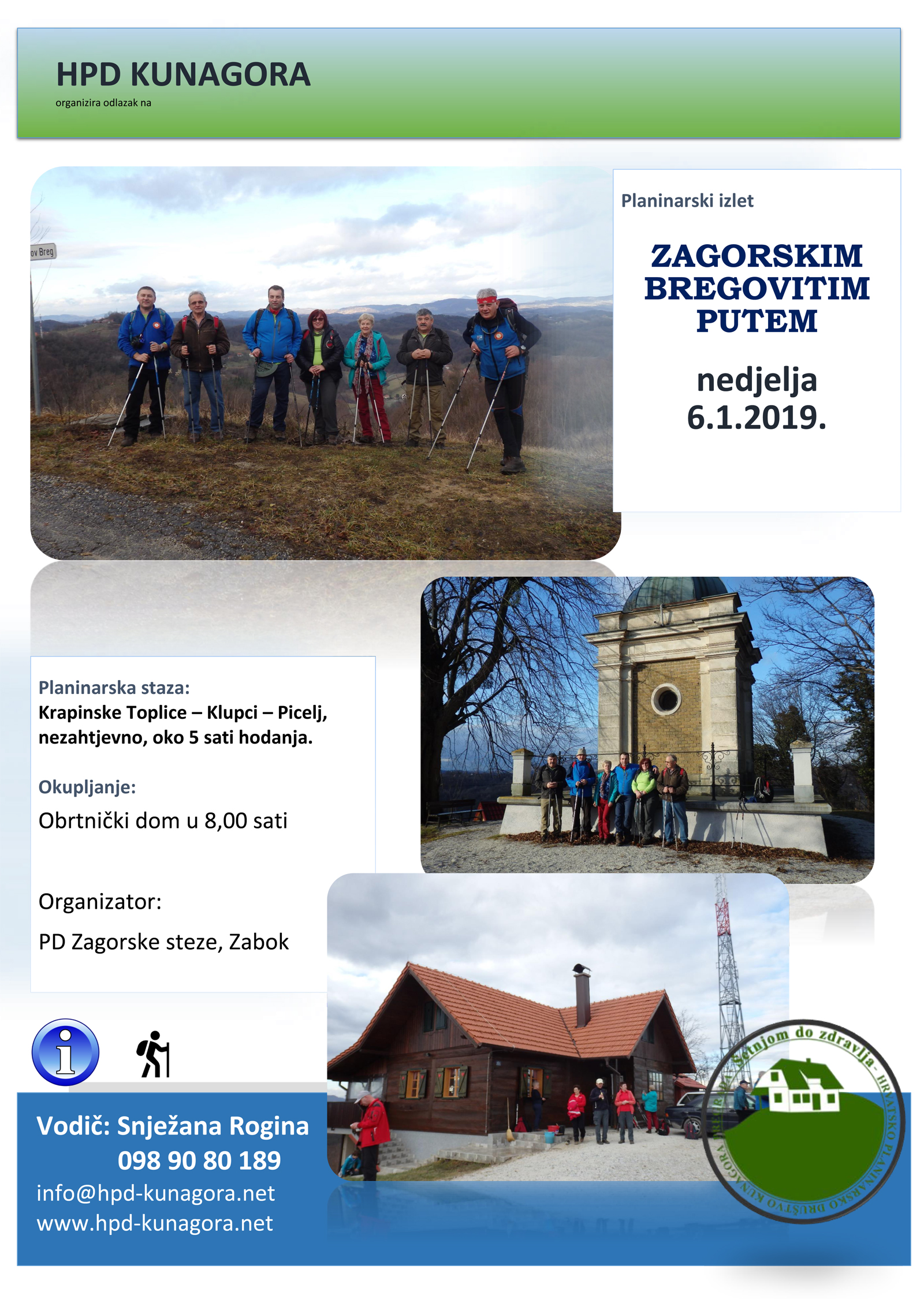 Najava izleta: Nedjelja, 6.1.2019. Krapinske Toplice - Picelj - Zabok