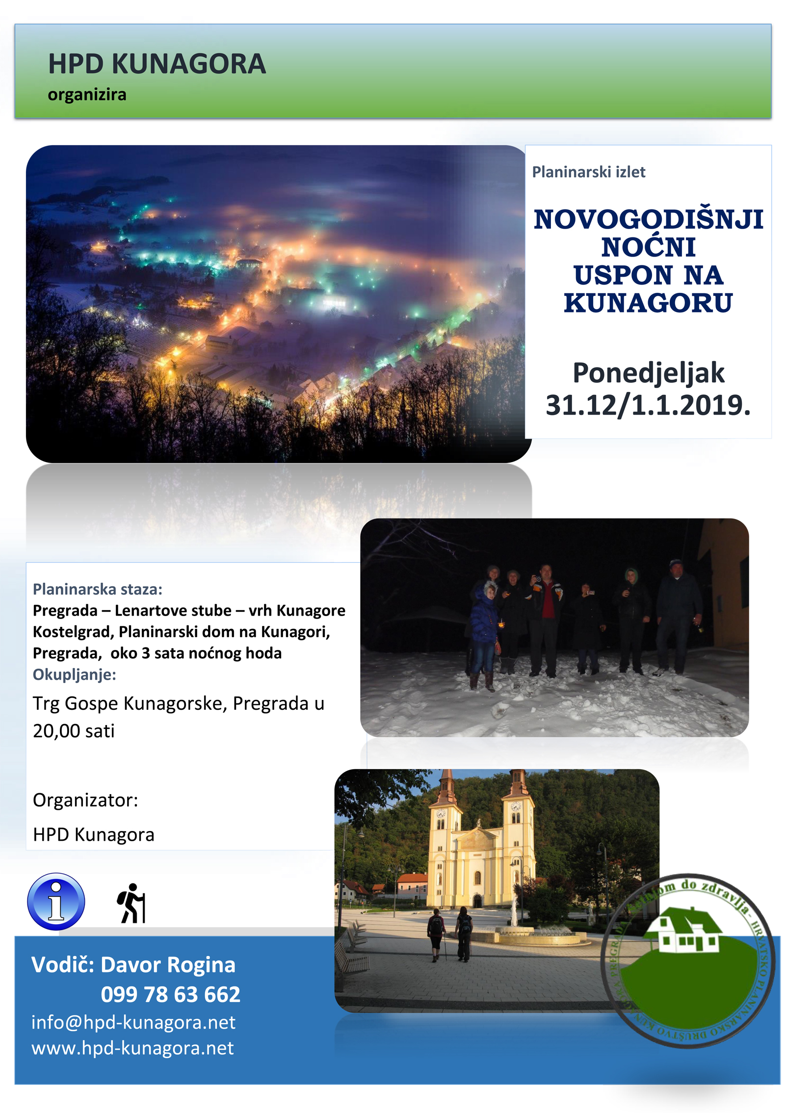 Na staru godinu, u ponedjeljak 31.12.2018. godine organiziramo tradicionalno novogodišnje noćno planinarsko druženje s pohodom na Kunagoru.