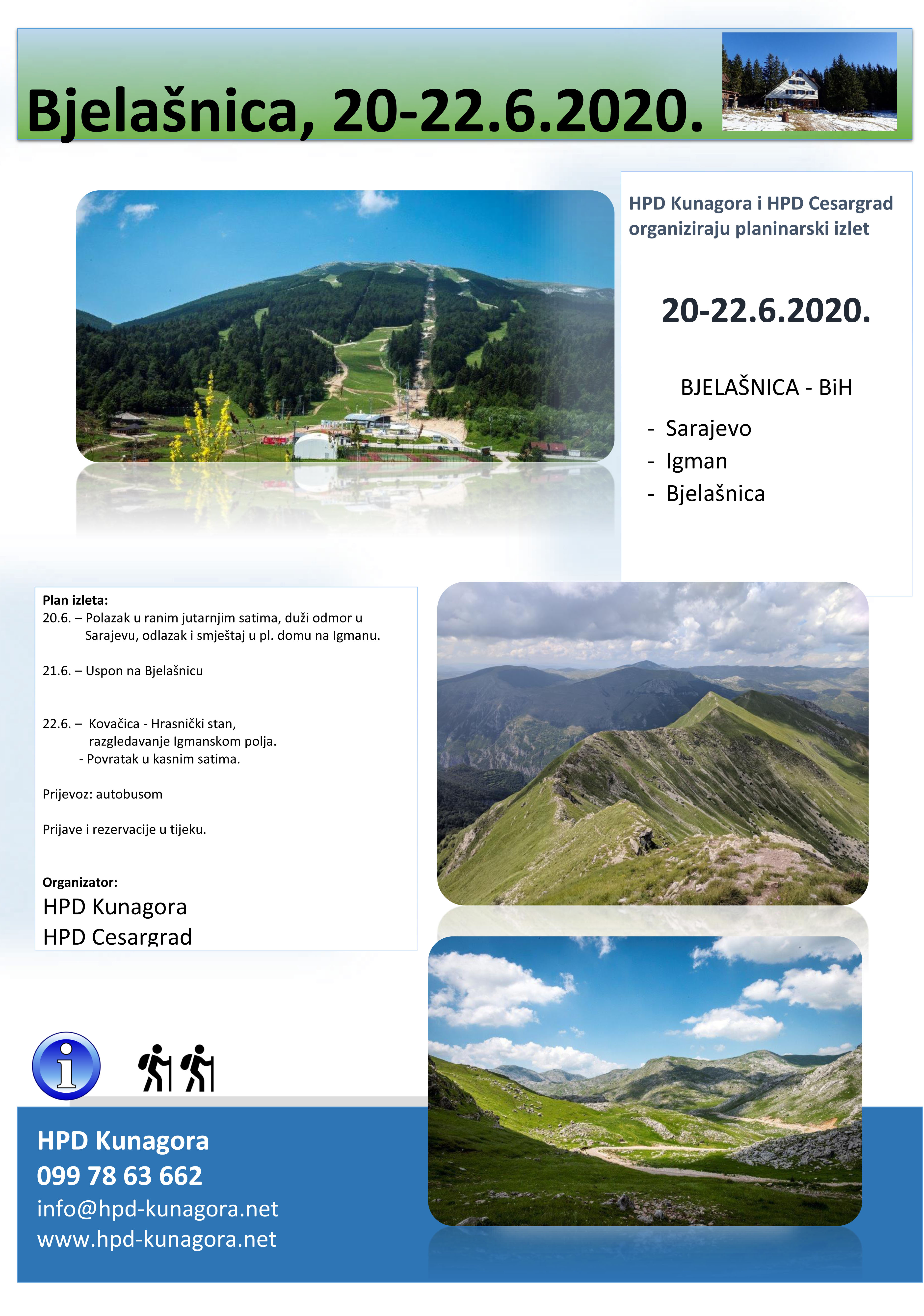 U suradnji sa HPD Cesargrad Klanjec u lipnju, od 20-22.6.2020. organiziramo trodnevni izlet na Bjelašnicu.