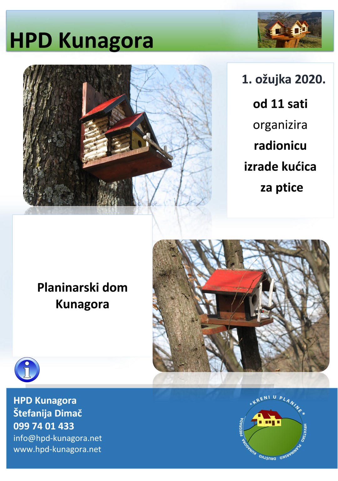 Planinarski dom na Kunagori, nedjelja 1.3.2020. u 11,00 sati